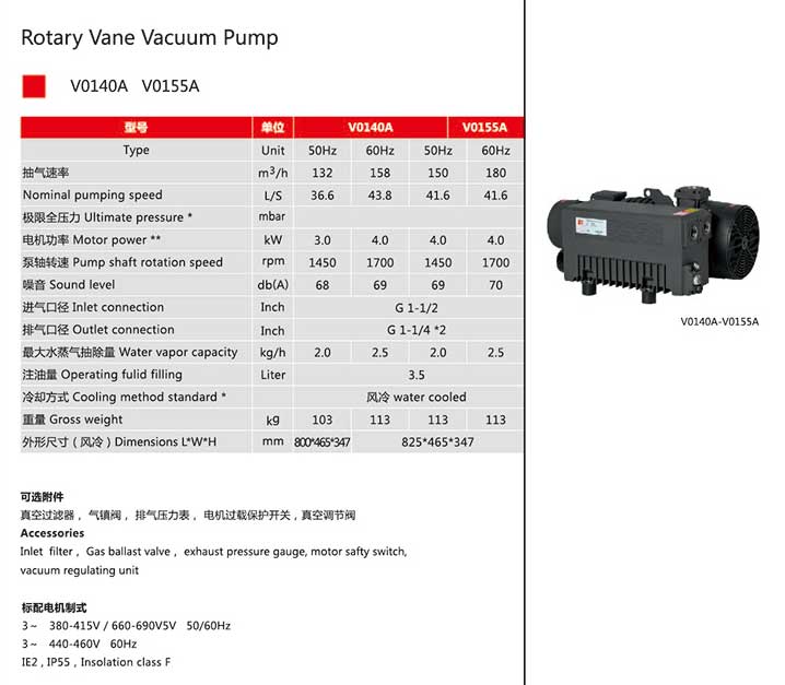 品種類型:V-系列 旋片真空泵
